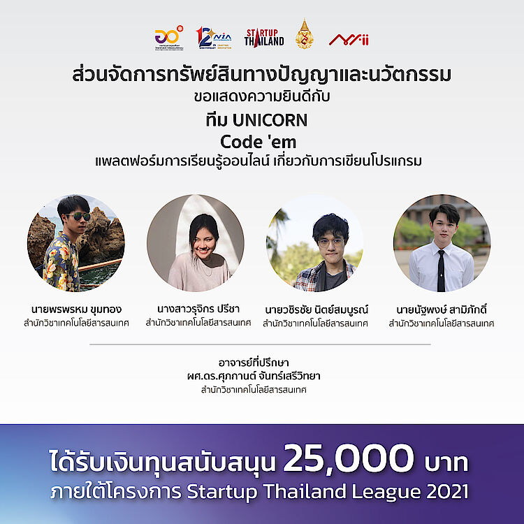 ผ่านการอนุมัติในรอบ Pitching จากสำนักงานนวัตกรรมแห่งชาติ (องค์การมหาชน) ภายใต้โครงการ Startup Thailand League 2021 จากผู้สมัครเข้าร่วมการแข่งขัน ทั้งหมด 400 ทีม 40 มหาวิทยาลัย โดยมหาวิทยาลัยแม่ฟ้าหลวงได้ส่งนักศึกษาเข้าร่วมการแข่งขันทั้งสิ้น จำนวน 10 ทีม ซึ่งทั้ง 8 ทีมที่ผ่านการอนุมัติ ได้แก่