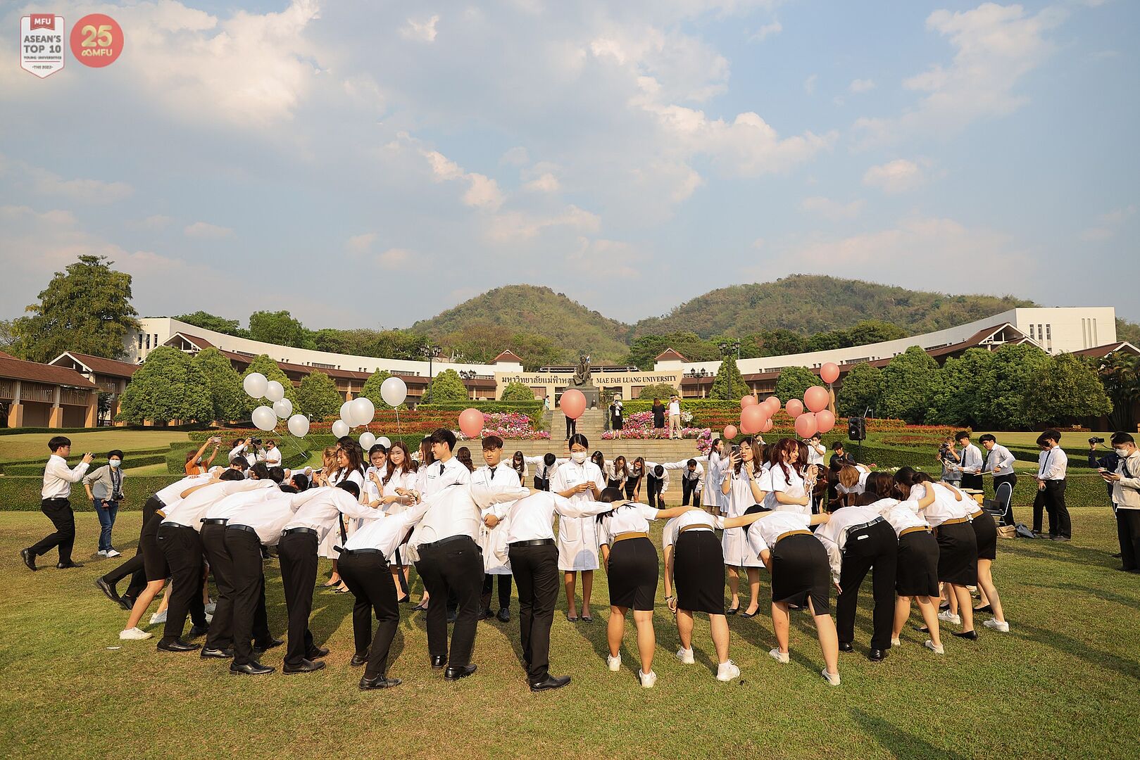 มหาวิทยาลัยแม่ฟ้าหลวง (มฟล.) โดย สำนักวิชาแพทยศาสตร์ จัด พิธีมอบเสื้อกาวน์แก่นักศึกษาแพทย์ ชั้นปีที่ 4 รุ่นที่ 8 ประจำปีการศึกษา 2566 เมื่อวันพุธที่ 22 มีนาคม 2566 ณ ห้องประชุมประดู่แดง 1 อาคารพลเอกสำเภา ชูศรี มฟล. โดยได้รับเกียรติจาก ศาสตราจารย์เกียรติคุณ นพ. ศุภกร โรจนนินทร์ คณบดีสำนักวิชาแพทยศาสตร์ เป็นประธานในพิธี พร้อมด้วยคณาจารย์จากสำนักวิชาแพทยศาสตร์ แขกผู้มีเกียรติ พร้อมทั้งครอบครัวของนักศึกษาแพทย์ร่วมแสดงความยินดี