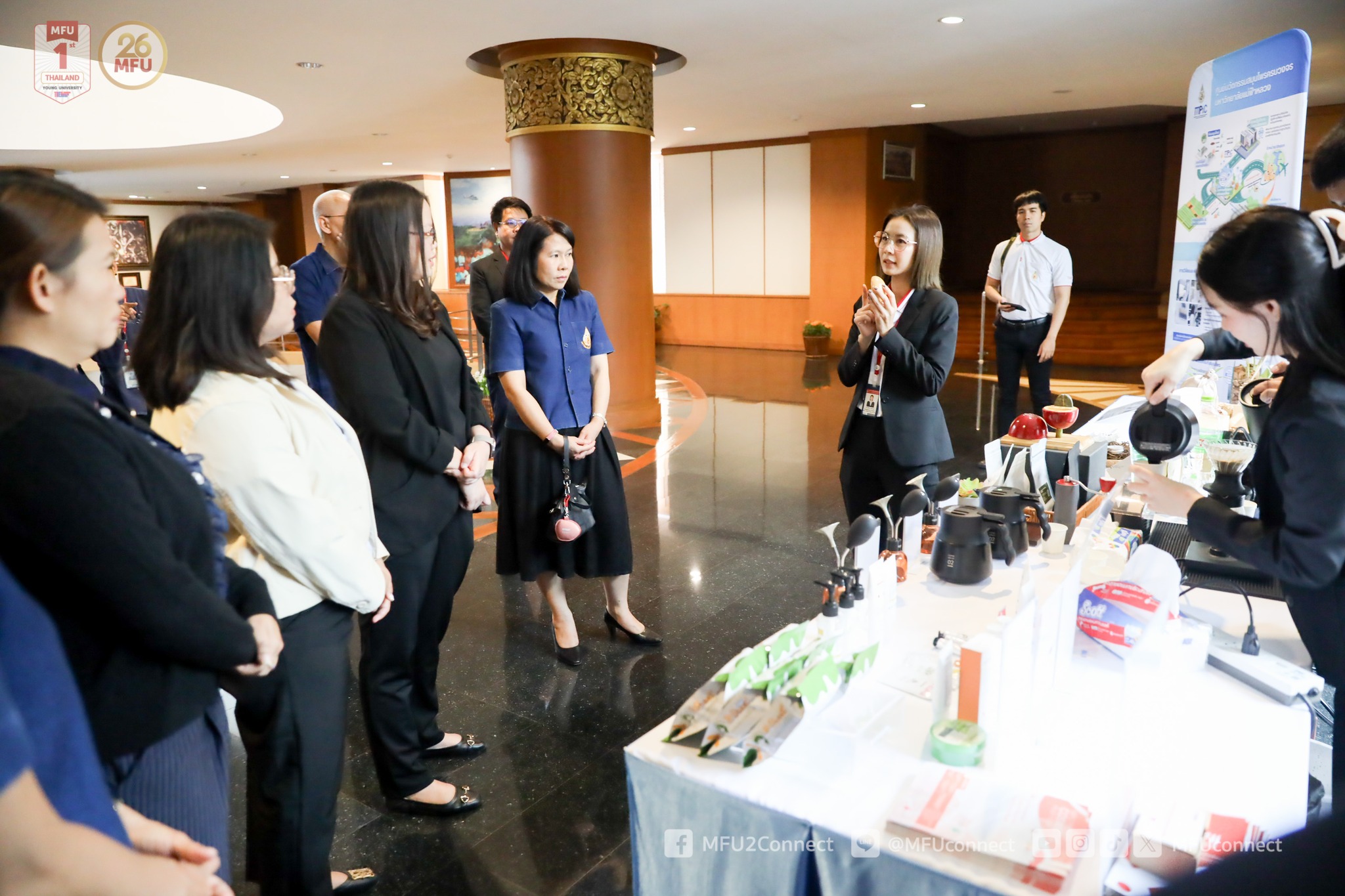 โดยก่อนการเข้าร่วมหารือ ทางมหาวิทยาลัยแม่ฟ้าหลวงได้มีโอกาสจัดบูธนำเสนอผลการดำเนินงานของหน่วยงานที่สนับสนุนด้านการวิจัยของมหาวิทยาลัย คือ ส่วนจัดการทรัพย์สินทางปัญญาและนวัตกรรม (MFii) สถาบันวิจัยและนวัตกรรมมหาวิทยาลัยแม่ฟ้าหลวง ซึ่งได้ร่วมมือกับสำนักวิชาต่าง ๆ ของมหาวิทยาลัย ในการส่งเสริมการวิจัยและต่อยอดนำผลงานวิจัยพัฒนาไปสู่การสร้างผลิตภัณฑ์ต้นแบบ ร่วมกับหน่วยงานที่เกี่ยวข้อง เช่น โรงงานต้นแบบเครื่องสำอางมหาวิทยาลัยแม่ฟ้าหลวง นำองค์ความรู้ไปต่อยอดร่วมกับชุมชนและผู้ประกอบการ ออกไปสู่การสร้างผลิตภัณฑ์ในภาคอุตสาหกิจและภาคอุตสาหกรรม ไม่ว่าจะเป็นชาและกาแฟ อาหาร และเครื่องสำอาง ที่มุ่งเน้นสร้างมูลค่าเพิ่มให้แก่ผลผลิตทางการเกษตรในท้องถิ่น ตั้งแต่เริ่มต้นจนถึงการสร้างตราสินค้าและการทำการตลาด