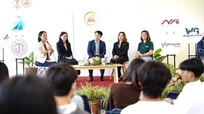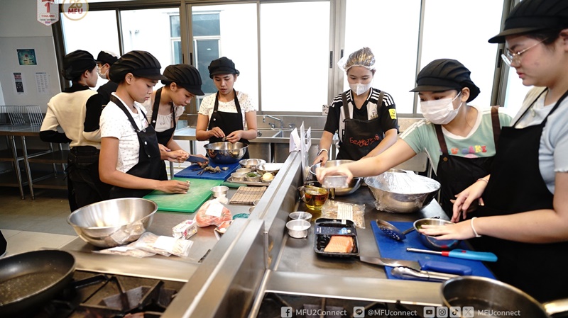 วันที่ 21 กุมภาพันธ์ 2568 - ที่ห้องฝึกปฏิบัติการครัวและห้องอาหารจำลอง (Mock up) ชั้น 4 อาคาร M-Square มหาวิทยาลัยแม่ฟ้าหลวง โครงการเมืองนวัตกรรมอาหารส่วนขยายมหาวิทยาลัยแม่ฟ้าหลวง จัดกิจกรรม "Carb Grow 4 Good: คาร์บสุดเก๋จากกล้วย ช่วยเพิ่มมูลค่าให้ผลผลิตทางการเกษตร" โดยได้รับความสนใจจากนักศึกษา เกษตรกร ผู้ประกอบการ และบุคคลทั่วไปเข้าร่วมงานคับคั่ง