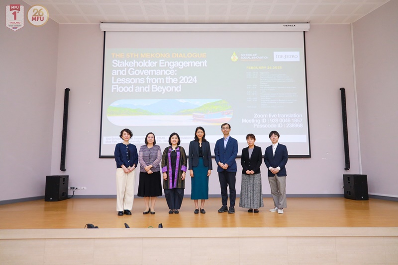 สำนักวิชานวัตกรรมสังคม มหาวิทยาลัยแม่ฟ้าหลวง ร่วมกับ Institute of Developing Economies-Japan External Trade Organization (IDE-JETRO) จัดโครงการ"The 5th Mekong Dialogue" ภายใต้หัวข้อ "Stakeholder Engagement and Governance: Lessons from the 2024 Flood and Beyond" ระหว่างวันที่ 26-27 กุมภาพันธ์ 2568 ณ ห้องประดู่แดง 2 อาคารพลเอกสำเภา ชูศรี มหาวิทยาลัยแม่ฟ้าหลวง พิธีเปิดกิจกรรมจัดขึ้นในวันที่ 26 กุมภาพันธ์ 2568 โดยมี รองศาสตราจารย์ ดร.ดรุณี วัฒนศิริเวช รองอธิการบดีมหาวิทยาลัยแม่ฟ้าหลวง เป็นประธานกล่าวเปิดงาน มีผู้เข้าร่วมราว 120 คน