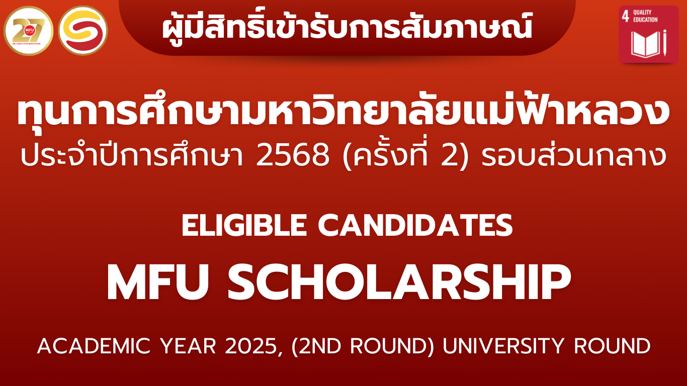 นักศึกษาที่มีรายชื่อต้องเข้ารับการสัมภาษณ์ทุนการศึกษาฯ รอบส่วนกลาง