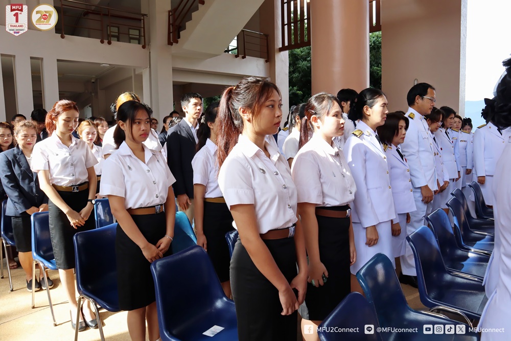 วันศุกร์ที่ 10 ตุลาคม 2568 มหาวิทยาลัยแม่ฟ้าหลวง (มฟล.) จัดพิธีวางพวงมาลา และน้อมรำลึกพระมหากรุณาธิคุณ เนื่องในวันคล้ายวันสวรรคตพระบาทสมเด็จพระบรมชนกาธิเบศร มหาภูมิพลอดุลยเดชมหาราช บรมนาถบพิตร “วันนวมินทรมหาราช” ณ โถงอเนกประสงค์ อาคารเรียนรวม 1 (C1) มหาวิทยาลัยแม่ฟ้าหลวง โดยมี ผู้ช่วยศาสตราจารย์ ดร.มัชฌิมา นราดิศร อธิการบดี เป็นประธานในพิธี พร้อมด้วยคณะผู้บริหาร พนักงาน และนักศึกษา เข้าร่วมพิธีโดยพร้อมเพรียงกัน