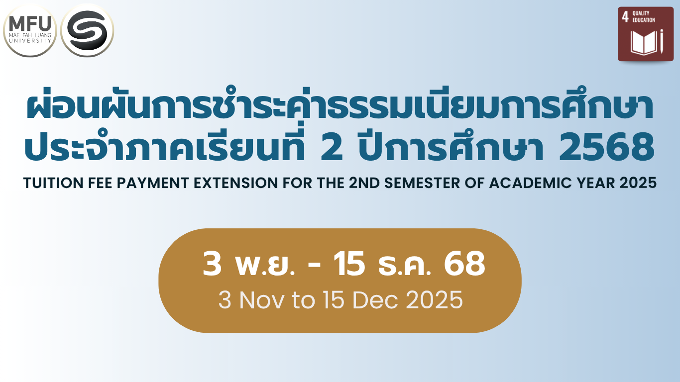 การผ่อนผันการชำระค่าธรรมเนียมการศึกษา ภาคเรียนที่ 2 ปีการศึกษา 2568 | Tuition Fee payment extension for the second semester of academic year 2025