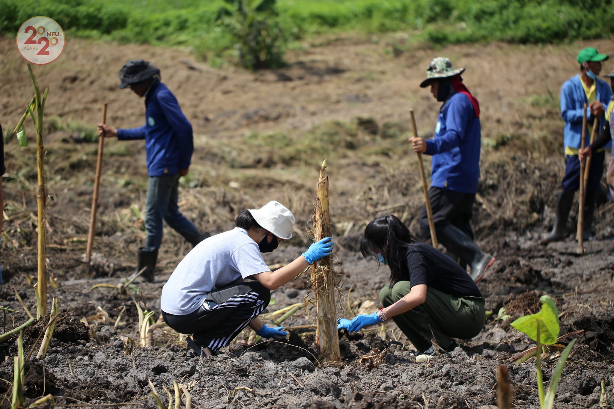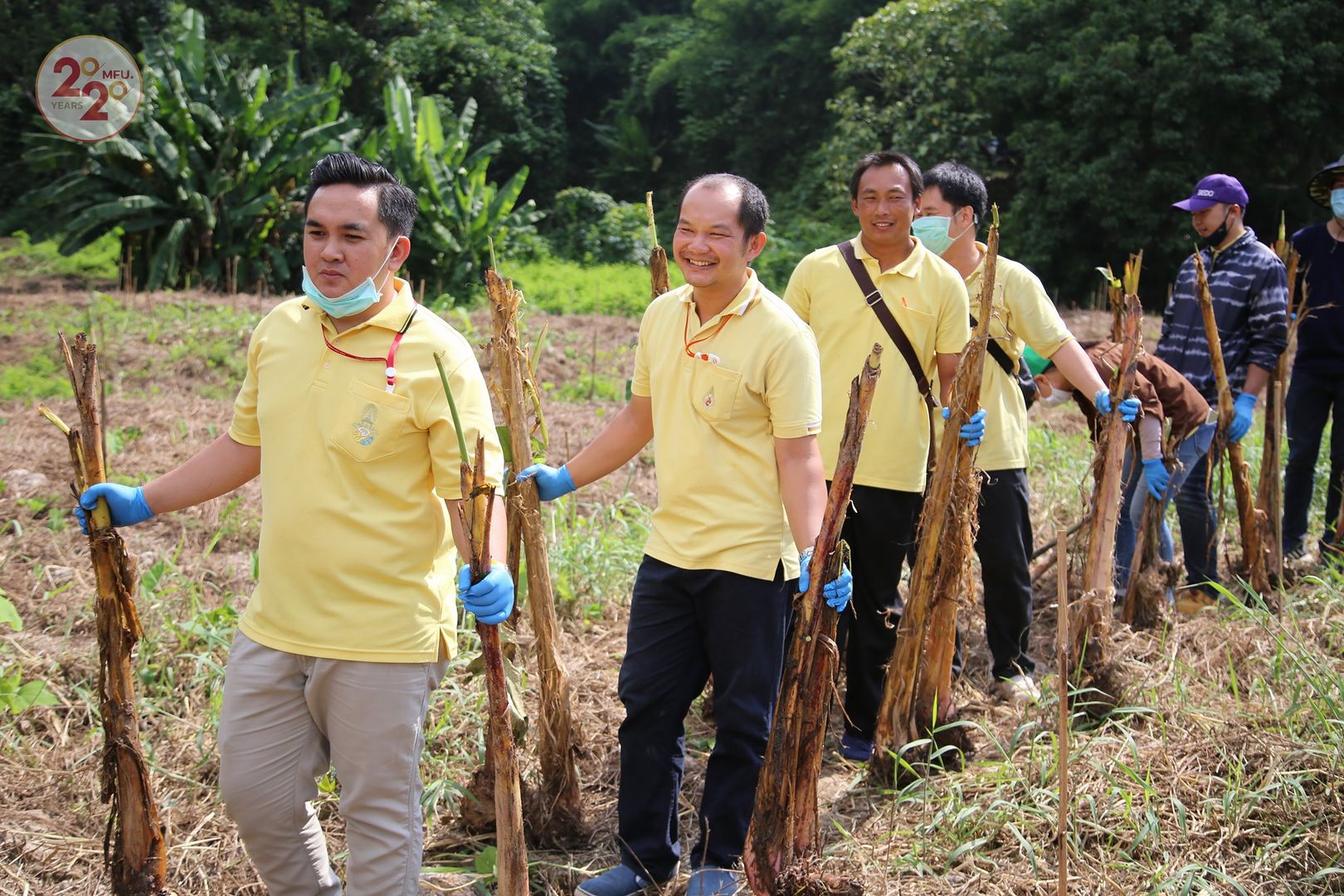 โครงการสวนพฤกษศาสตร์ มหาวิทยาลัยแม่ฟ้าหลวง (มฟล.) นำโดย ดร.จันทรารักษ์ โตวรานนท์ หัวหน้าโครงการฯ จัดกิจกรรม ‘รักษ์น้ำ รักษ์ป่า รักษ์ดิน’ เมื่อวันศุกร์ที่ 24 กรกฎาคม 2563 เวลา 09.00-12.00 น. ที่บริเวณอ่างเก็บน้ำ มหาวิทยาลัยแม่ฟ้าหลวง เนื่องในวันเฉลิมพระชนมพรรษาพระบาทสมเด็จพระวชิรเกล้าเจ้าอยู่หัว ประจำปี 2563 โดยผู้เข้าร่วมกิจกรรมทั้งผู้บริหาร คณาจารย์ และพนักงาน โดยเฉพาะนักศึกษา ที่โครงการฯ ได้ประกาศขออาสาสมัคร ซึ่งมีนักศึกษาสมัครเข้ามาช่วยในโครงการจากทุกสำนักวิชาทั้งนักศึกษาไทย และนักศึกษาต่างชาติ ร่วมกันลำเลียงหน่อกล้วยเพื่อนำไปปลูกบริเวณอ่างเก็บน้ำ